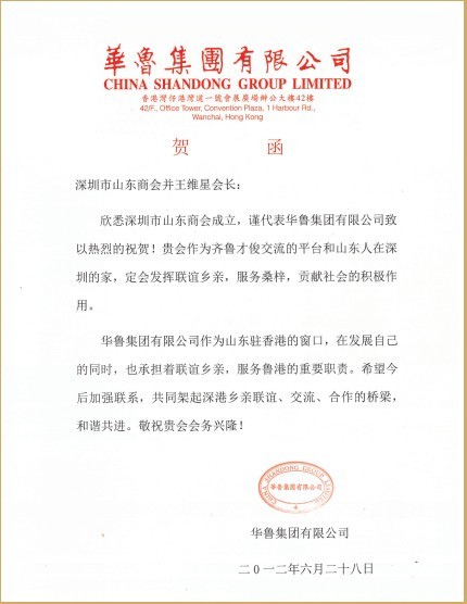 德國山東同鄉(xiāng)會賀信 阿聯(lián)酋山東商會暨齊魯同鄉(xiāng)會賀信