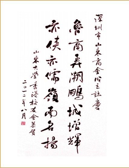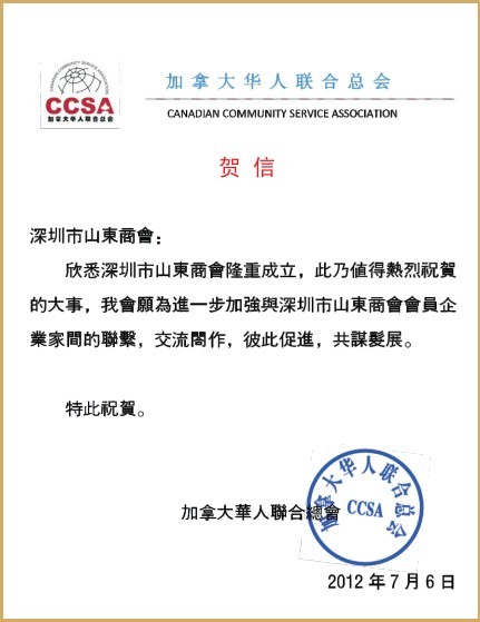 山東大學(xué)香港校友會賀信 加拿大華人聯(lián)合總會
