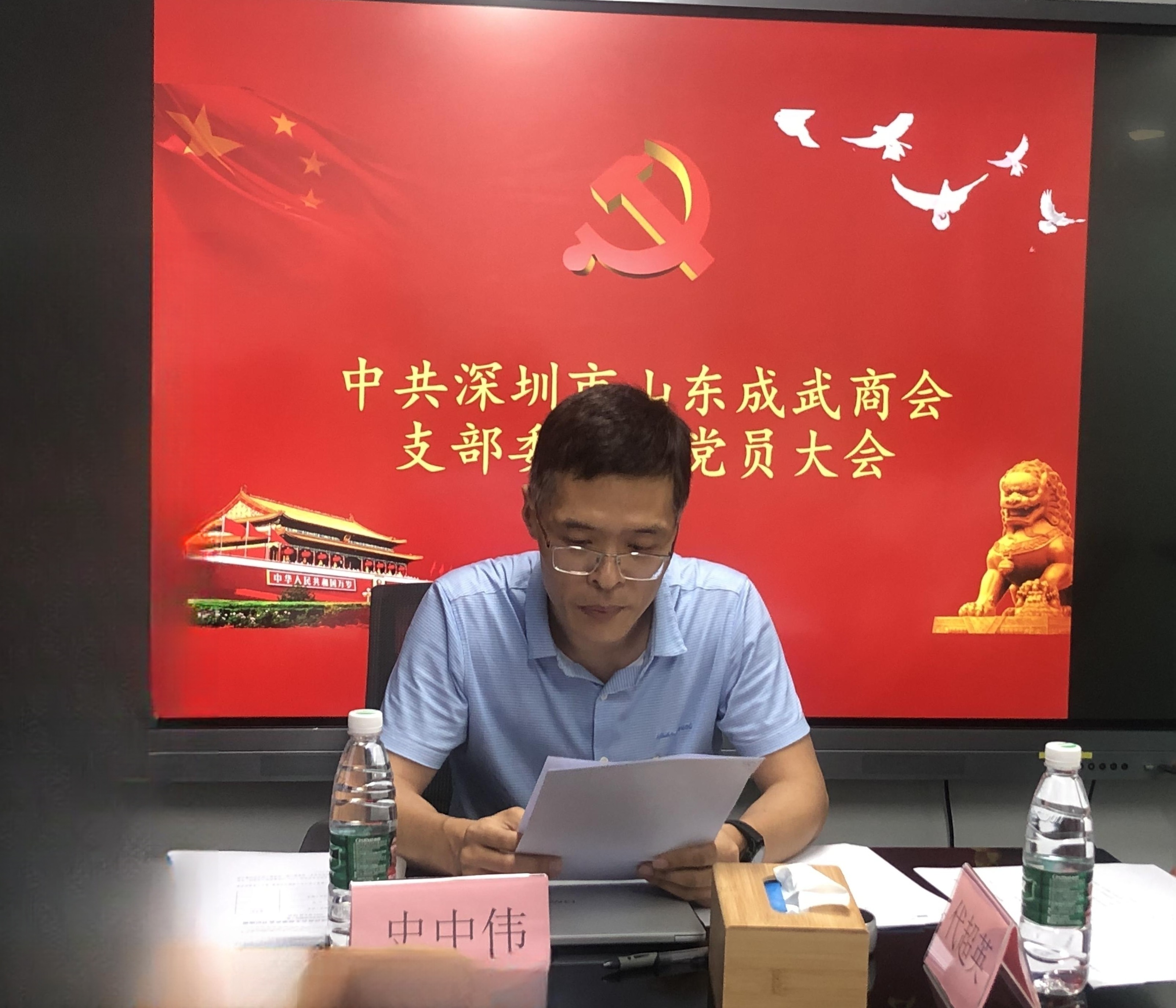 深圳市山東商會(huì)黨委黨辦主任張含增同志宣讀《深圳市山東商會(huì)黨委關(guān)于成立中共深圳市山東成武商會(huì)支部委員會(huì)的批復(fù)》。
