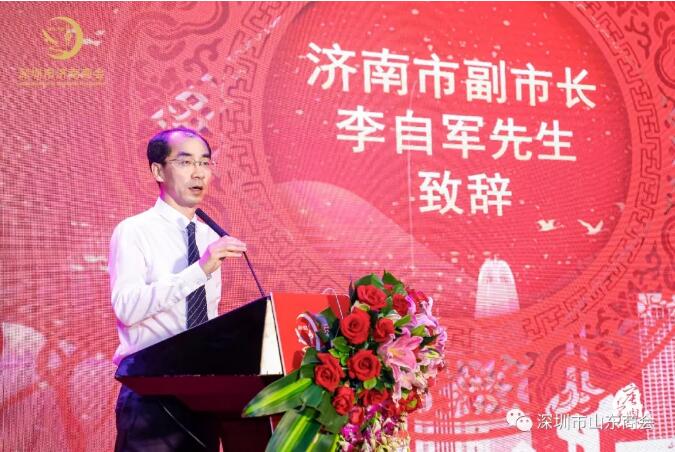 我會(huì)會(huì)長(zhǎng)王立新在致辭中對(duì)深圳市濟(jì)南商會(huì)的成立表示熱烈祝賀,對(duì)新當(dāng)選的畢永濤會(huì)長(zhǎng)等新一屆領(lǐng)導(dǎo)班子表示熱烈的祝賀!王會(huì)長(zhǎng)指出,濟(jì)南是國(guó)家歷史文化名城,也是山東省的政治、經(jīng)濟(jì)、文化、科教和金融中心、她不僅在地理交通、人文環(huán)境、政治經(jīng)濟(jì)等方面有著得天獨(dú)厚的優(yōu)勢(shì),更因高校院所集中、科技人集聚,擁有了豐富的科研人才和充足的人力資源。泉城濟(jì)南,可謂文化璀璨,人杰地靈。自去年以來(lái),濟(jì)南市始終把加快新舊動(dòng)能轉(zhuǎn)換先行區(qū)作為重中之重,堅(jiān)持“項(xiàng)目為王”,強(qiáng)力推動(dòng)新舊動(dòng)能轉(zhuǎn)換。政府采取各種措施,全力打造良好營(yíng)商環(huán)境和對(duì)外開(kāi)放新高地。濟(jì)南“雙招雙引”走到了全省的前列。深圳是我國(guó)改革開(kāi)放的窗口,創(chuàng)業(yè)創(chuàng)新生態(tài)優(yōu)越,人才聚集,經(jīng)濟(jì)社會(huì)發(fā)展充滿(mǎn)生機(jī)和活力。深圳市濟(jì)南商會(huì)的成立,必將帶領(lǐng)在深眾多濟(jì)南籍老鄉(xiāng),富而思源,反哺桑梓,給家鄉(xiāng)引入新的資金、理念和模式。深圳市山東商會(huì)也將繼續(xù)立足深圳及粵港澳大灣區(qū),一如既往的支持、服務(wù)濟(jì)南市招商引資、招才引智工作,全力支持“深圳市濟(jì)南商會(huì)”的各項(xiàng)工作,聚集各方資源,推動(dòng)項(xiàng)目、資金、人才向山東、向濟(jì)南集聚,為家鄉(xiāng)新舊動(dòng)能轉(zhuǎn)換重大工程做出貢獻(xiàn)。