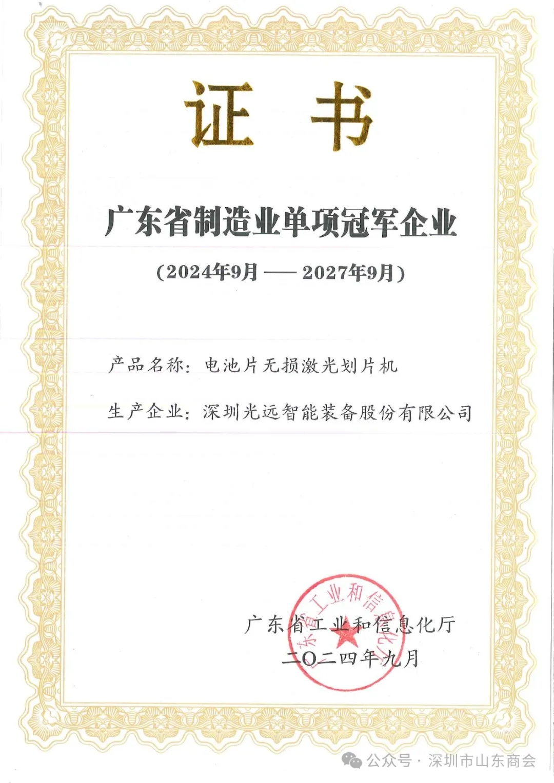 【會企動態(tài)】喜報!祝賀我會理事單位深圳光遠智能裝備股份有限公司榮獲廣東省制造業(yè)單項冠軍企業(yè)
