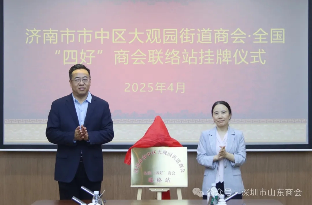 座談會(huì)后,舉行了濟(jì)南市市中區(qū)大觀園街道商會(huì)全國(guó)“四好”商會(huì)聯(lián)絡(luò)站掛牌儀式,為雙方未來(lái)的合作奠定了堅(jiān)實(shí)的基礎(chǔ)。