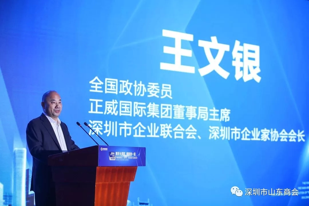 會議開始,濟南市委常委、濟南高新區(qū)管委會主任王宏志,深圳市山東商會會長、深圳市東華實業(yè)(集團)有限公司總經(jīng)理王立新,正威國際集團董事局主席、深圳市企業(yè)聯(lián)合會、深圳市企業(yè)家協(xié)會會長王文銀先后上臺致辭。