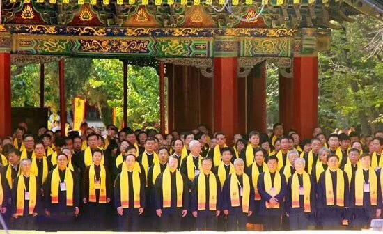 隨后,在悠長的古樂聲中,全場嘉賓莊嚴肅立,整理衣冠,向至圣先師孔子行鞠躬禮。主持人宣布,丁酉年紀念孔子誕辰2568年公祭大典禮成。