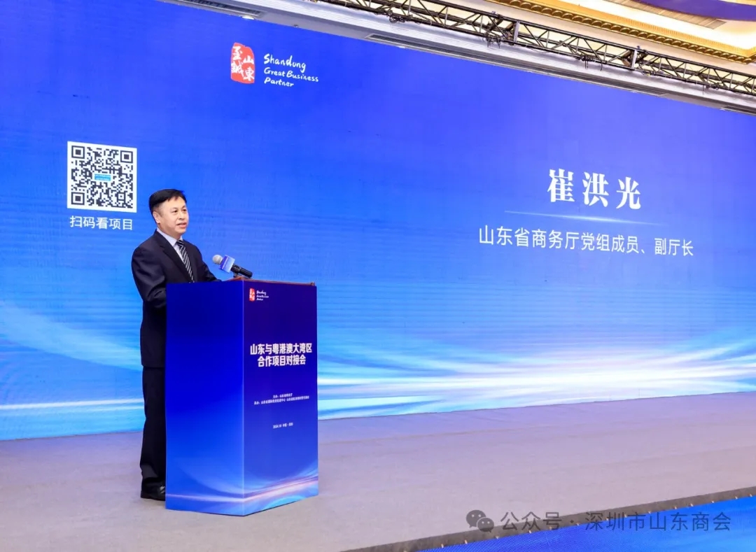 2024年10月29日下午,山東與粵港澳大灣區(qū)合作項(xiàng)目對接會在深圳舉辦,活動由山東省商務(wù)廳主辦,山東省國際投資促進(jìn)中心、山東省政府駐港澳經(jīng)貿(mào)代表處承辦。此次對接會旨在進(jìn)一步推動山東與粵港澳大灣區(qū)共享發(fā)展機(jī)遇,深化交流,推動山東資本招商與股權(quán)投資合作,實(shí)現(xiàn)互利共贏。山東省商務(wù)廳黨組成員、副廳長崔洪光出席會議并致辭?;浉郯拇鬄硡^(qū)私募機(jī)構(gòu)、股權(quán)投融資機(jī)構(gòu)、行業(yè)領(lǐng)軍企業(yè)等代表,省委金融辦、省商務(wù)廳及各市商務(wù)主管部門相關(guān)負(fù)責(zé)同志及企業(yè)代表約100人參會。我會會長王立新受邀出席對接會并致辭,我會執(zhí)行會長、深圳東華黨委副書記、董事總經(jīng)理劉立基受邀參加了對接會。