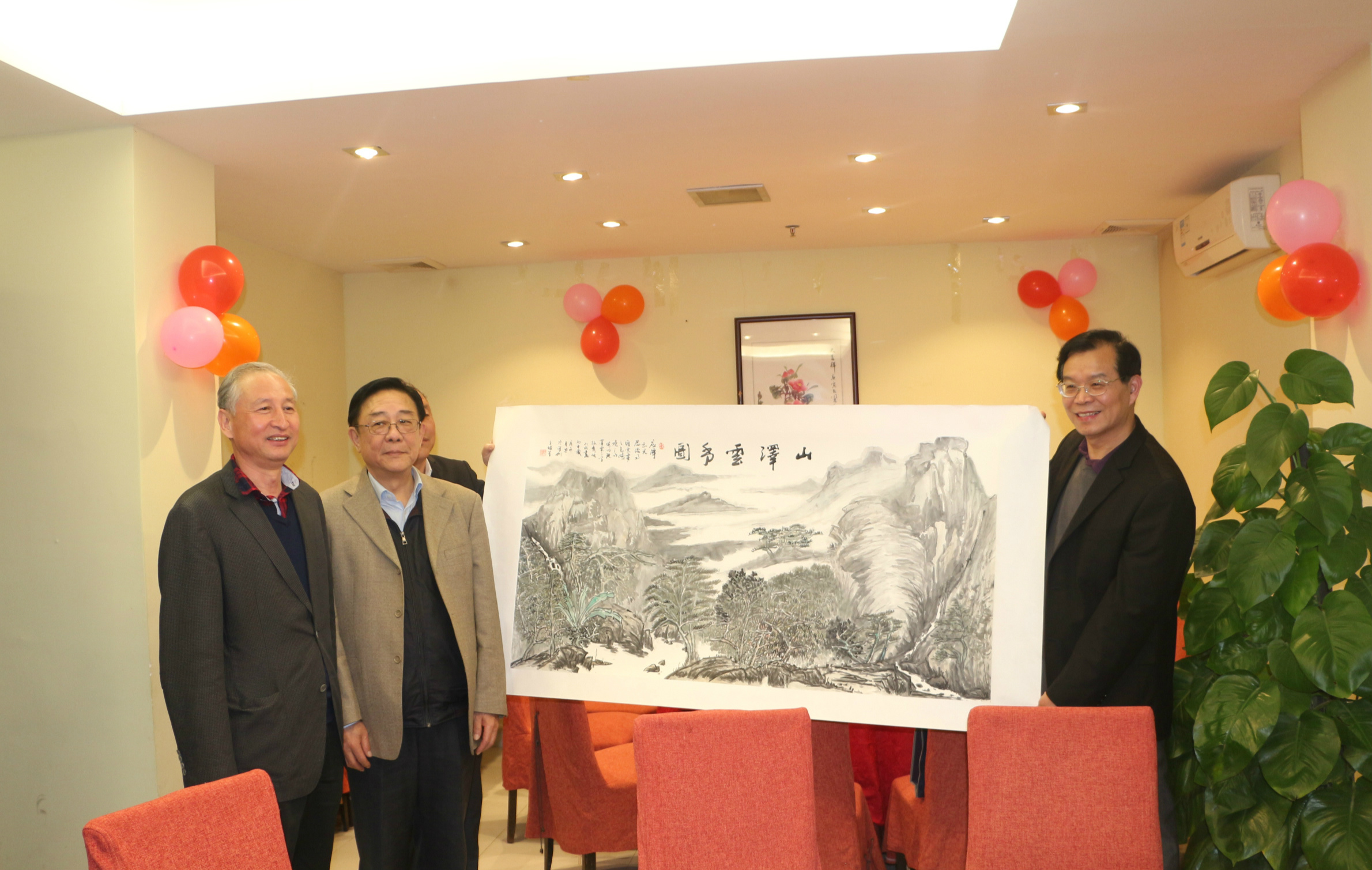 商會(huì)創(chuàng)會(huì)會(huì)長(zhǎng)王維星向監(jiān)事長(zhǎng)王澤云贈(zèng)送原創(chuàng)佳作