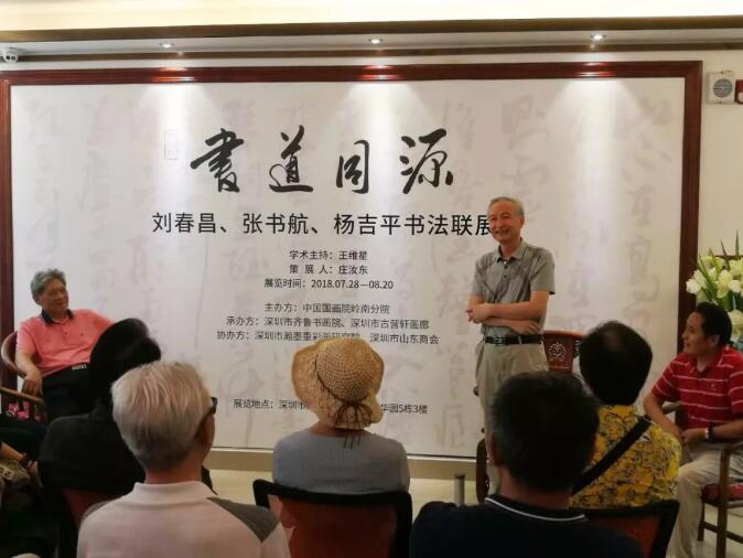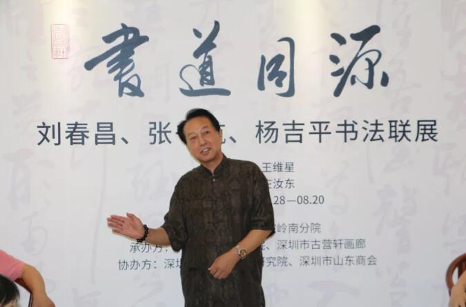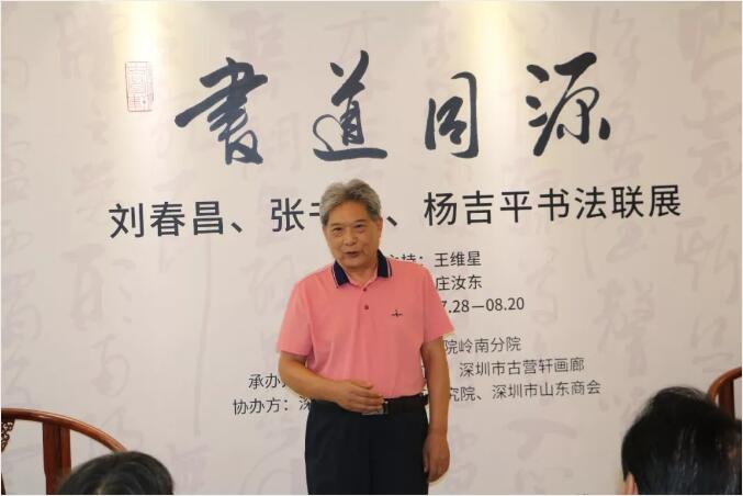 7月28日的深圳微風(fēng)習(xí)習(xí),藍(lán)天白云相互映襯。上午10點半,“書道同源”——劉春昌、張書航、楊吉平書法聯(lián)展在南山區(qū)南海大道東華園五棟三樓古營軒畫廊隆重開展。中國國畫院嶺南分院、深圳市山東商會黨委書記、創(chuàng)會會長、深圳市齊魯書畫院院長王維星,深圳市企業(yè)家書畫學(xué)會會長翟先立,南山區(qū)老年書畫協(xié)會會長朱榮國,蛇口嶺南書畫院院長余善霖,我會副會長王凌鴻、張捷、李軍,常務(wù)理事張延偉、王宣民,理事王德強,執(zhí)行秘書長兼辦公室主任陳振永,黨委辦公室主任兼副秘書長張含增等嘉賓、文人墨客、書畫愛好者到場參觀祝賀,開幕式由古營軒畫廊總經(jīng)理莊汝東主持。