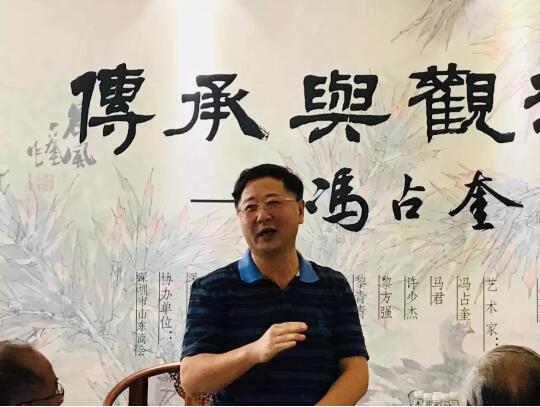 原深圳市南山區(qū)政協(xié)主席陳章聯(lián),中國(guó)國(guó)畫院嶺南分院院長(zhǎng)、深圳市齊魯書(shū)畫院院長(zhǎng)、我會(huì)創(chuàng)會(huì)會(huì)長(zhǎng)王維星,會(huì)長(zhǎng)王立新,深圳市翰墨重彩畫研究院院長(zhǎng)趙巨耀,學(xué)生代表馬君小姐先后講話,共祝展覽成功。王維星院長(zhǎng)在講話中回憶了與馮占奎先生的交往,對(duì)馮占奎先生的花鳥(niǎo)畫作品給予高度贊賞。