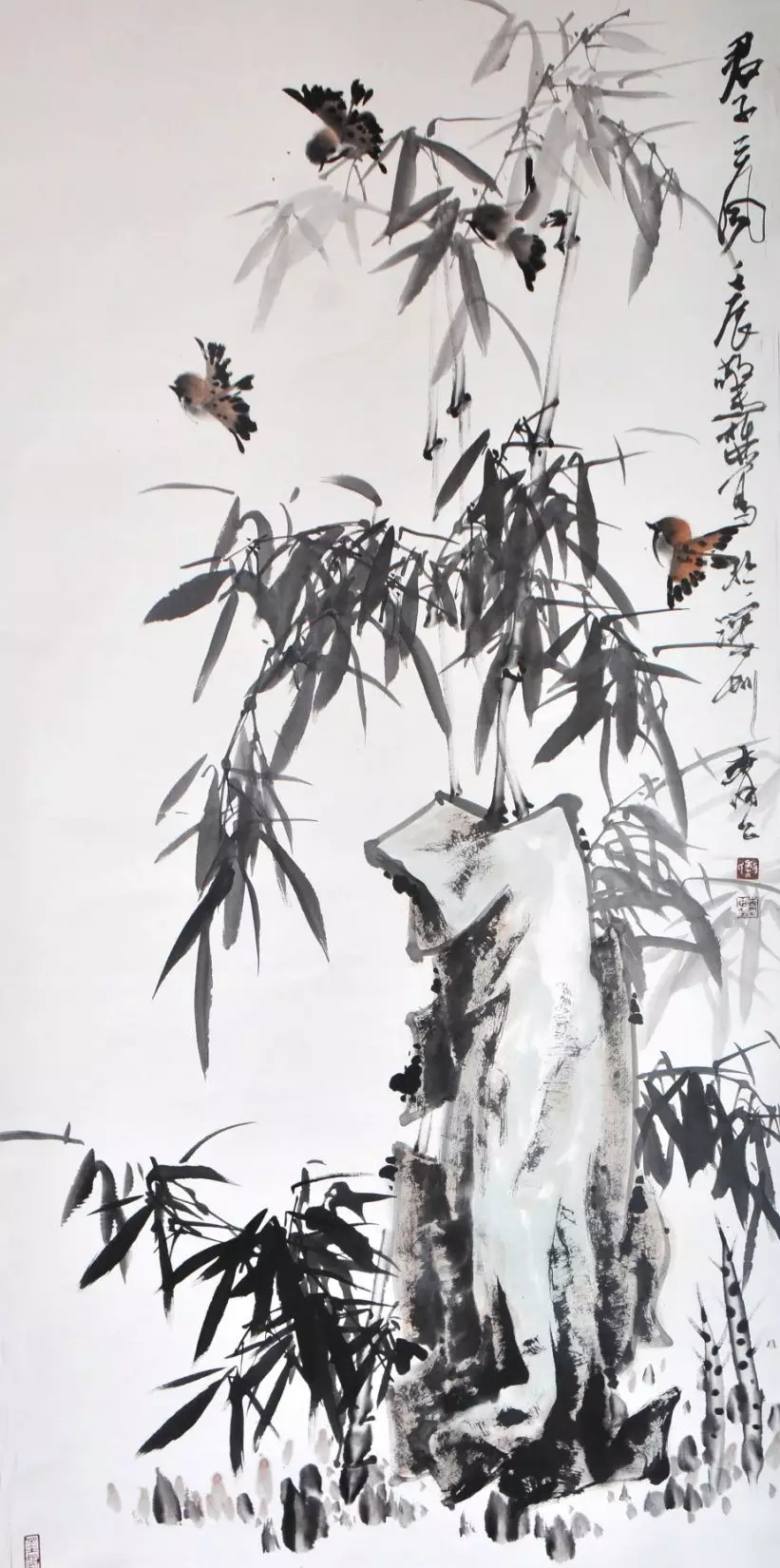 參展學(xué)生中,馬君作品創(chuàng)作的無(wú)功利性,作品簡(jiǎn)潔、清雅。許少杰筆墨的熟練,并能將寫生素材用于創(chuàng)作之中,作品精美,大開(kāi)大合,雅俗共賞。黎方強(qiáng)書(shū)法傳統(tǒng)功力深厚,求學(xué)嚴(yán)謹(jǐn),書(shū)畫作品高古,文人畫味十足。黎青青工筆畫清雅可人,并把多畫種技法用于國(guó)畫創(chuàng)作中,在中小學(xué)美術(shù)教學(xué)中,創(chuàng)立個(gè)人的特色美育教學(xué)體系等等。他們各有千秋,可圈可點(diǎn)。