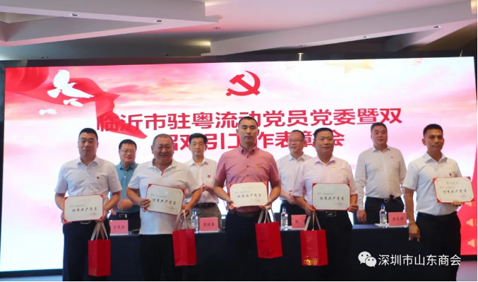 7月11日上午,山東臨沂市駐粵流動黨員黨委暨雙招雙引工作表彰會議在深圳市寶能黨群服務中心召開。山東省人民政府駐廣州辦事處主任袁延春出席會議并講話。我會執(zhí)行會長兼秘書長梁慶偉受王立新會長委托代表山東商會出席并主持了會議。山東臨沂市駐粵流動黨員黨委書記、市政府駐廣東聯(lián)絡處主任張肖,廣東省沂蒙文化發(fā)展促進會會長王慶安,我會副會長朱禮貴,執(zhí)行秘書長陳振永等出席了會議。深圳市山東商會、廣東省沂蒙文化發(fā)展促進會、臨沂市各縣區(qū)駐粵流動黨員黨組織、駐粵招才引智工作站負責同志以及受表彰的“優(yōu)秀黨務工作者”、“優(yōu)秀共產(chǎn)黨員”、“雙招雙引先進個人”和“沂蒙精神優(yōu)秀宣講員”等參加了會議。此次表彰中我會會員苑春曉榮獲“臨沂雙招雙引工作先進個人”榮譽。