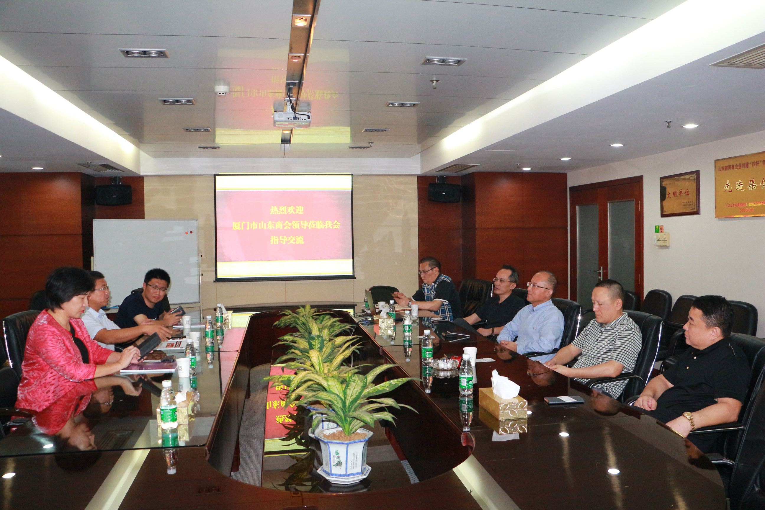 隨后,常務(wù)副會長兼秘書長王維感謝呂強(qiáng)秘書長等廈門山東老鄉(xiāng)對廈門之行的熱情接待,隨后,就商會運(yùn)作,會員服務(wù),服務(wù)山東各地市招商等與客人討論交流。常務(wù)副會長高征就醫(yī)療產(chǎn)業(yè)投資與客人深入交流,并就多個(gè)項(xiàng)目投資產(chǎn)生共鳴。