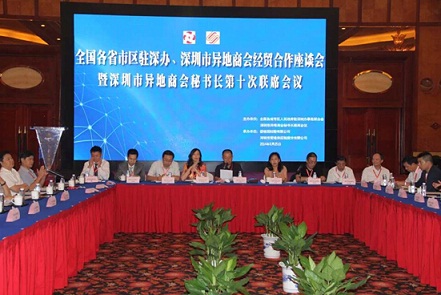 2014年9月25日下午,“深圳市異地商會秘書長第十次聯(lián)席會議暨全國各省市區(qū)人民政府駐深圳辦事處聯(lián)合會、深圳市異地商會秘書長聯(lián)席會議經(jīng)貿(mào)合作座談會”在深圳圣廷苑酒店召開。榮譽會長劉恒昌、秘書長伍柳江與來自湖南、河北、云南、山西、福建、黑龍江、貴州、內蒙古、上海、重慶等50余位全國各省市政府駐深圳(廣東)辦事處主任,以及來自深圳市福建、四川、天津、黑龍江、汕頭商會等的50余位深圳市異地商會秘書長出席。