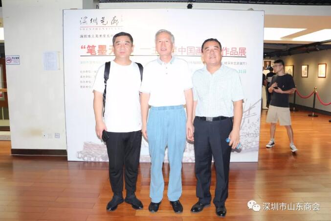 深圳市山東商會會長王立新(左一)、深圳出版發(fā)行集團黨委書記尹昌龍(右一)與深圳市齊魯書畫院院長王維星合影