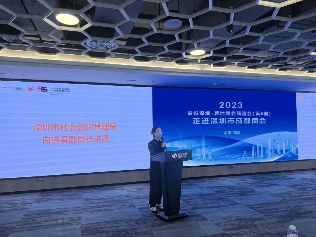 2023年10月16日,由深圳市社會組織總會策劃的系列主題活動(dòng)“益說深圳·異地商會聯(lián)誼會”(第6期)在深圳市成都商會會長單位“深圳微芯生物科技股份有限公司(股票代碼:688321)成功舉行。深圳市社會組織管理局副局長白洪春,市社會組織管理局登記管理處副處長鄭培偉 ,深圳市社會組織總會執(zhí)行會長蘇建東等出席會議,本次聯(lián)誼會邀請了30余家異地商會會長、秘書長參加。我會執(zhí)行會長兼秘書長梁慶偉代表商會參加了此次聯(lián)誼會。