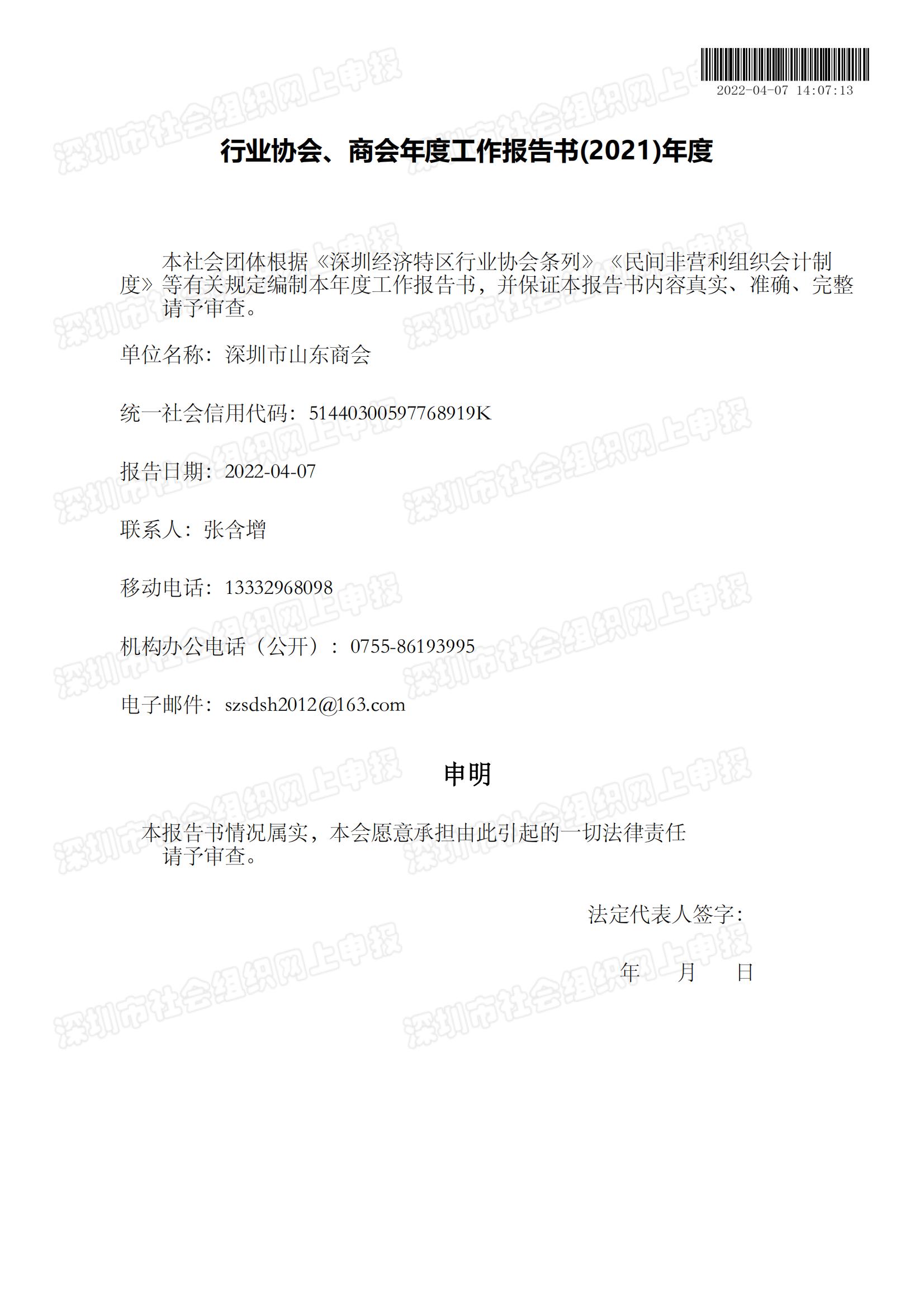 深圳市山東商會(huì)完成2021年度社會(huì)組織年報(bào)