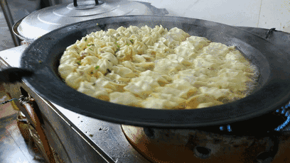 一碗鲅魚餃子、墨魚餃子、黃魚餃子,可以從一口一個(gè)到一只有手掌大小,展示山東餃子的七十二變。輕輕松松,蕩開鮮味的漣漪,游入山東游子的思鄉(xiāng)胃;