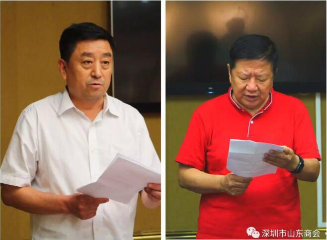 深圳市山東商會黨委紀(jì)委書記張書航同志(左),山東商會黨委委員、黨總支副書記畢永濤同志(右)