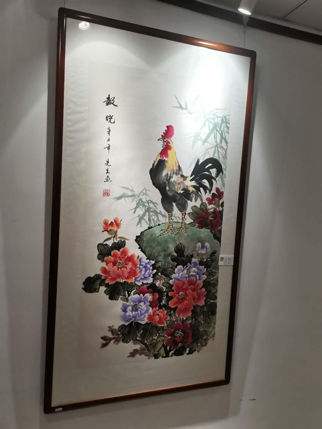 正值黨的百歲生日,此次書畫還展示了多幅歌頌祖國大好河山的不同風(fēng)格的作品,有的山峰氣勢雄偉,群山簇立,層巒疊嶂,怪石嶙峋;有的江河奔騰不息,氣勢雄闊,流水汩汩;有歌頌英雄的《木棉花》;有展翅欲飛的《百年雄鷹》;有“雄雞一唱天下白”的《報曉》等。