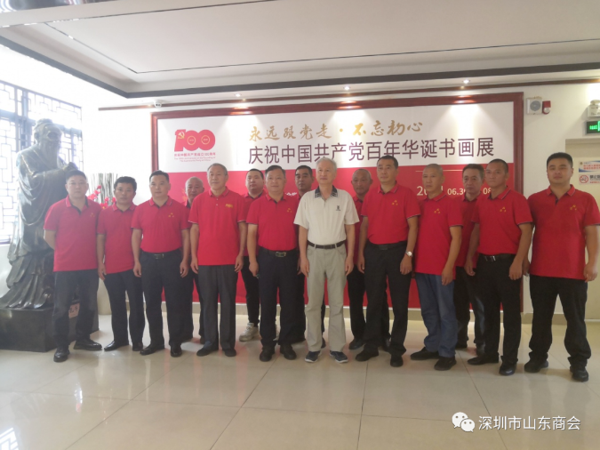 為慶祝中國共產(chǎn)黨成立100周年,深入學(xué)習(xí)貫徹習(xí)近平總書記在慶祝中國共產(chǎn)黨成立100周年大會上的重要講話精神,進(jìn)一步推進(jìn)黨史學(xué)習(xí)教育,扎實落實習(xí)近平總書記“學(xué)黨史、務(wù)思想、辦實事、開新局”的重要指示精神,2021年7月2日,深圳市山東商會深平一支部、深平二支部全體黨員,前往深圳市齊魯書畫院參觀學(xué)習(xí)由深圳市山東商會黨委、深圳市齊魯書畫院聯(lián)合舉辦的“永遠(yuǎn)跟黨走,不忘初心”慶祝中國共產(chǎn)黨百年華誕書畫展。