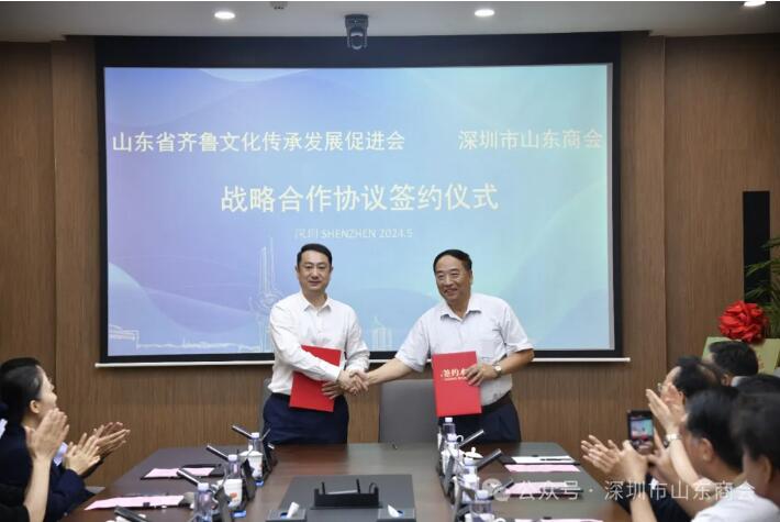 簽約儀式在莊重而熱烈的氛圍中舉行。我會(huì)執(zhí)行會(huì)長劉立基代表山東商會(huì)與文促會(huì)常務(wù)副會(huì)長鞠洪侖共同簽署了《山東省齊魯文化傳承發(fā)展促進(jìn)會(huì)與深圳市山東商會(huì)戰(zhàn)略合作協(xié)議》。此次合作:一是加強(qiáng)對齊魯優(yōu)秀傳統(tǒng)文化的研究、闡發(fā)、教育普及和保護(hù)傳承,打造傳統(tǒng)文化創(chuàng)新平臺,汲取優(yōu)秀傳統(tǒng)文化智慧,拓展齊魯文化研究領(lǐng)域,推進(jìn)齊魯文化創(chuàng)造性轉(zhuǎn)化、創(chuàng)新性發(fā)展。二是持續(xù)推動(dòng)山東和粵港澳大灣區(qū)各領(lǐng)域人文交流合作,探索建立粵港澳大灣區(qū)齊魯文化教育實(shí)踐基地,搭建學(xué)習(xí)交流平臺,擴(kuò)大齊魯文化在粵港澳大灣區(qū)影響力,形成全覆蓋、多層次、多面向的新格局,推進(jìn)山東經(jīng)濟(jì)文化強(qiáng)省建設(shè)。三是共同開發(fā)、整合資源,建立人才引育、雙招雙引、產(chǎn)學(xué)研協(xié)同創(chuàng)新等方面的高效合作機(jī)制,進(jìn)一步加強(qiáng)山東與粵港澳大灣區(qū)科技、經(jīng)濟(jì)、人才、文化等資源的交流與對接,推動(dòng)“文化+產(chǎn)業(yè)+人才”深度融合,賦能山東省高質(zhì)量雙招雙引和經(jīng)濟(jì)社會(huì)高質(zhì)量發(fā)展。這一重要時(shí)刻不僅標(biāo)志著兩會(huì)在文化傳承與發(fā)展領(lǐng)域的深度合作正式開啟,也預(yù)示著齊魯文化將在粵港澳大灣區(qū)煥發(fā)新的生機(jī)與活力。