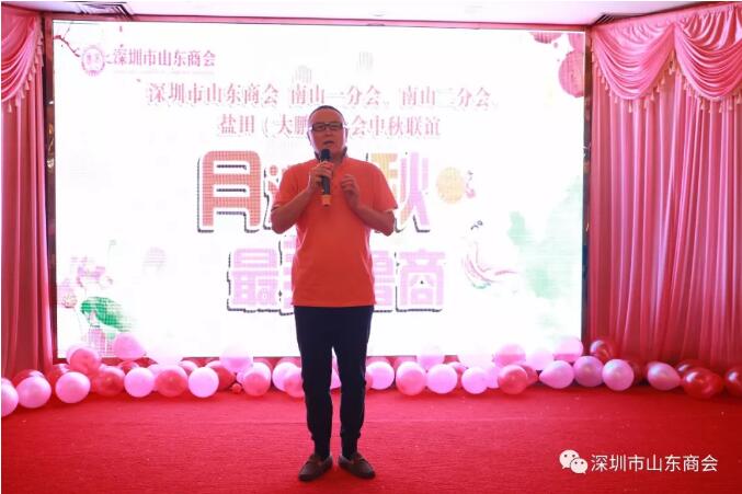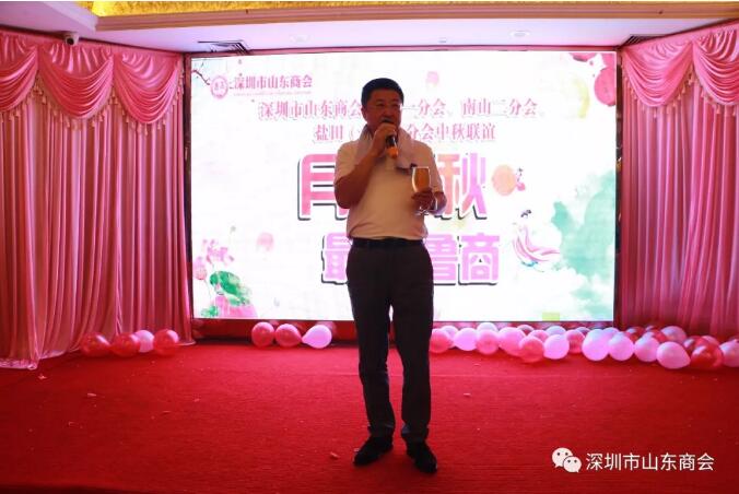 晚會開始,王立新會長代表商會上臺致辭,他在致辭中感謝大家一直以來對商會發(fā)展及工作給予的關心和支持,并表示商會是大家的商會,商會的良好發(fā)展是每個會員努力付出的結果,也是在深山東人凝聚團結的體現(xiàn),希望大家維護好山東人形象,繼承發(fā)揚好優(yōu)秀的傳統(tǒng),擦亮山東人的名片,同時祝大家中秋佳節(jié)快樂,事業(yè)興隆,闔家幸福。