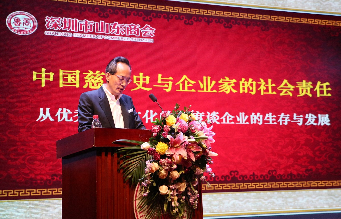 為進(jìn)一步提升會(huì)員企業(yè)家的思想境界和社會(huì)責(zé)任,助力會(huì)員企業(yè)發(fā)展。2017年11月25日下午,深圳市山東商會(huì)第八期《魯商大講堂》在深圳大學(xué)國(guó)際會(huì)議廳成功舉辦。本次大講堂邀請(qǐng)到深圳大學(xué)前校長(zhǎng)章必功教授給大家作“中國(guó)慈善史與企業(yè)家的社會(huì)責(zé)任”主題演講,從中國(guó)優(yōu)秀傳統(tǒng)文化的角度談企業(yè)的生存與發(fā)展。
