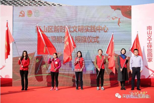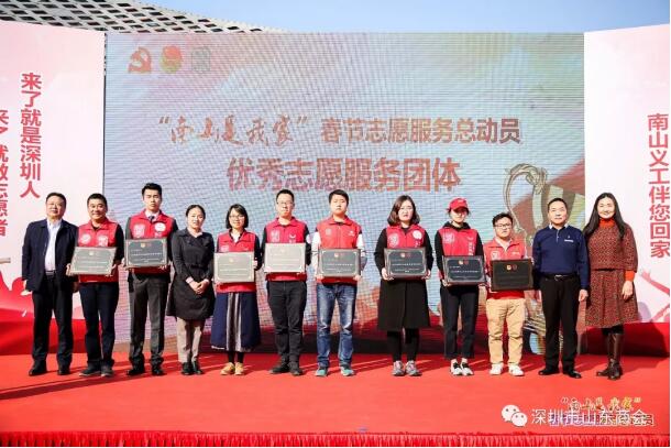 會(huì)上文化組謝伯紅組長(zhǎng)、藝術(shù)團(tuán)羅敬軍團(tuán)長(zhǎng)等被授予優(yōu)秀骨干志愿者。包括深圳灣創(chuàng)新廣場(chǎng)、南山圖書館、南山文化館、南山博物館、南山文體中心成為南山區(qū)新時(shí)代文明實(shí)踐中心的試點(diǎn)單位。區(qū)委領(lǐng)導(dǎo)為文化組志愿者服務(wù)的“一場(chǎng)三館一中心”5支新時(shí)代文明實(shí)踐志愿服務(wù)分隊(duì)授旗。為表彰深圳市山東商會(huì)2018年度所做的工作,共青團(tuán)深圳市南山區(qū)委會(huì)和深圳市南山區(qū)義工聯(lián)合會(huì)聯(lián)合為深圳市山東商會(huì)義工大隊(duì)頒發(fā)“2018年度優(yōu)秀志愿服務(wù)團(tuán)體”榮譽(yù)稱號(hào)牌匾。