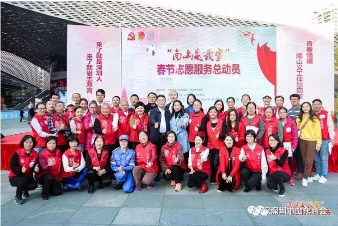1月17日下午,南山文體中心廣場(chǎng)紅潮涌動(dòng)——由團(tuán)市委、市關(guān)愛(ài)辦指導(dǎo)、南山區(qū)委宣傳部、南山團(tuán)區(qū)委主辦的“南山是我家”春節(jié)志愿服務(wù)總動(dòng)員活動(dòng)正式拉開大幕。南山區(qū)委副書記、政法委書記黃湘岳,區(qū)委常委、宣傳部部長(zhǎng)廖子彬等領(lǐng)導(dǎo)出席活動(dòng)。我會(huì)副會(huì)長(zhǎng)、義工大隊(duì)隊(duì)長(zhǎng)李軍,副秘書長(zhǎng)李青,微馬隊(duì)隊(duì)長(zhǎng)、義工大隊(duì)副秘書長(zhǎng)李井輝,商會(huì)辦公室徐長(zhǎng)穩(wěn)等代表商會(huì)義工大隊(duì)參加了活動(dòng)。