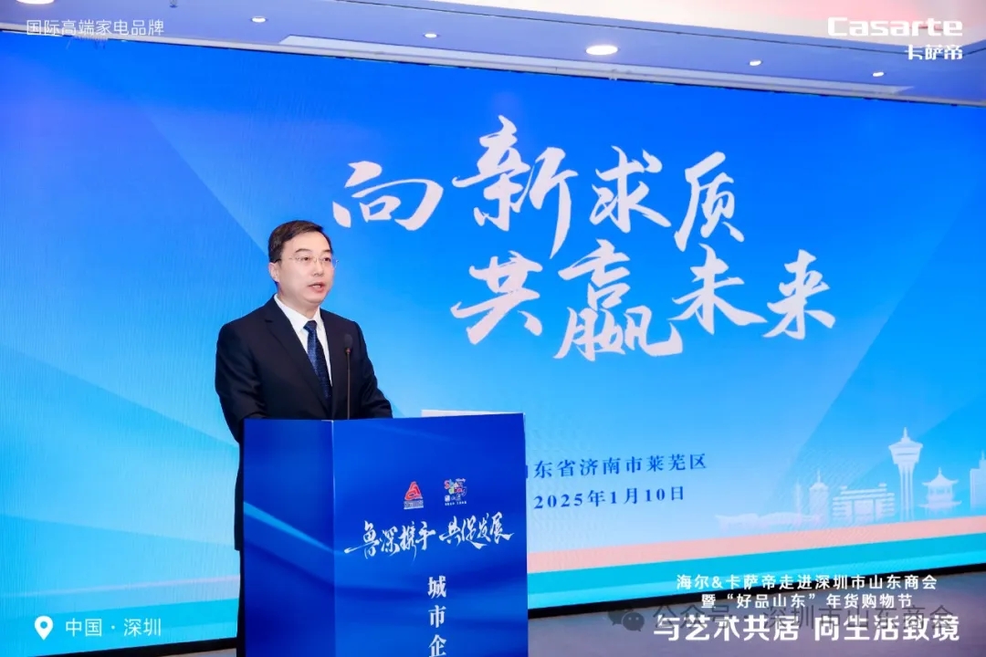 1月10日上午,由山東省工商聯(lián)、省農(nóng)業(yè)農(nóng)村廳、省國(guó)資委指導(dǎo),深圳市山東商會(huì)和深圳東華聯(lián)合主辦的2025魯深資源對(duì)接會(huì)在深圳東華假日酒店成功召開,會(huì)上,山東有關(guān)地市、知名企業(yè)做了推介,粵港澳大灣區(qū)“好品山東”聯(lián)合推廣中心正式揭牌。