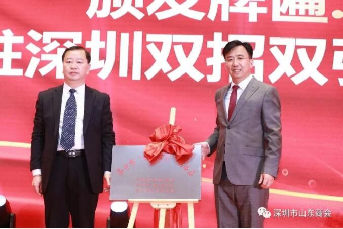 深圳市山東濟寧商會會長張慶闊與濟寧市委統(tǒng)戰(zhàn)部副部長、市工商聯(lián)黨組書記代超共同為濟寧市駐深“雙招雙引”聯(lián)絡(luò)站揭牌。