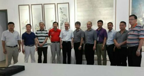 商會(huì)領(lǐng)導(dǎo)和畫家在展廳合影