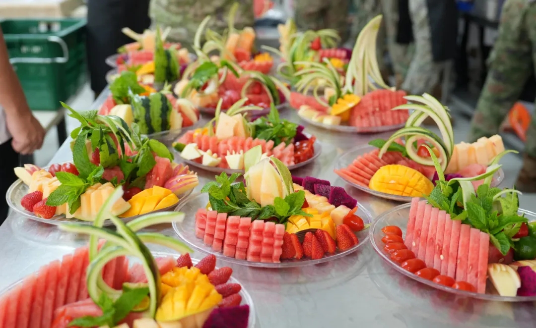 第一天的培訓(xùn)內(nèi)容是刀工、水果拼盤和畫盤。在專業(yè)廚師的指導(dǎo)下,炊事員們學(xué)習(xí)了如何運(yùn)用各種刀具進(jìn)行精細(xì)的切割,將水果制作成精美的拼盤,并通過畫盤技巧為菜品增色添彩。