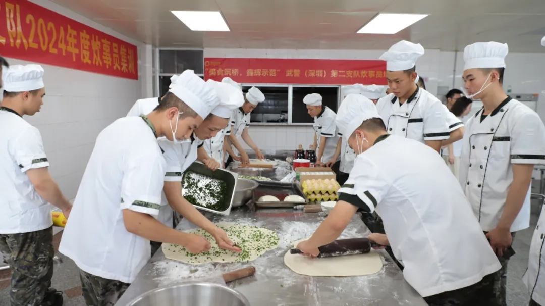 鑫輝集團(tuán)為武警深圳二支部炊事員們開展了一場(chǎng)為期五天的實(shí)操集訓(xùn),此次集訓(xùn)專注于中式菜肴和面食制作。在鑫輝集團(tuán)廚師團(tuán)隊(duì)的指導(dǎo)下,炊事員們學(xué)習(xí)了多種中式菜肴的制作方法,包括經(jīng)典的紅燒肉、糖醋魚塊、土豆?fàn)F雞等菜品。炊事員們還學(xué)習(xí)了如何制作美味的鍋貼、蔥油餅,從面團(tuán)制作到煎烤技巧,都一一掌握。