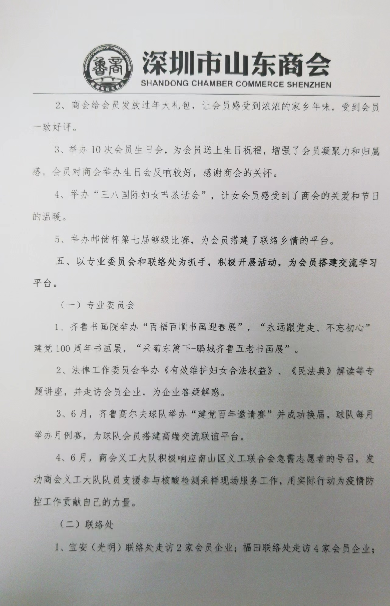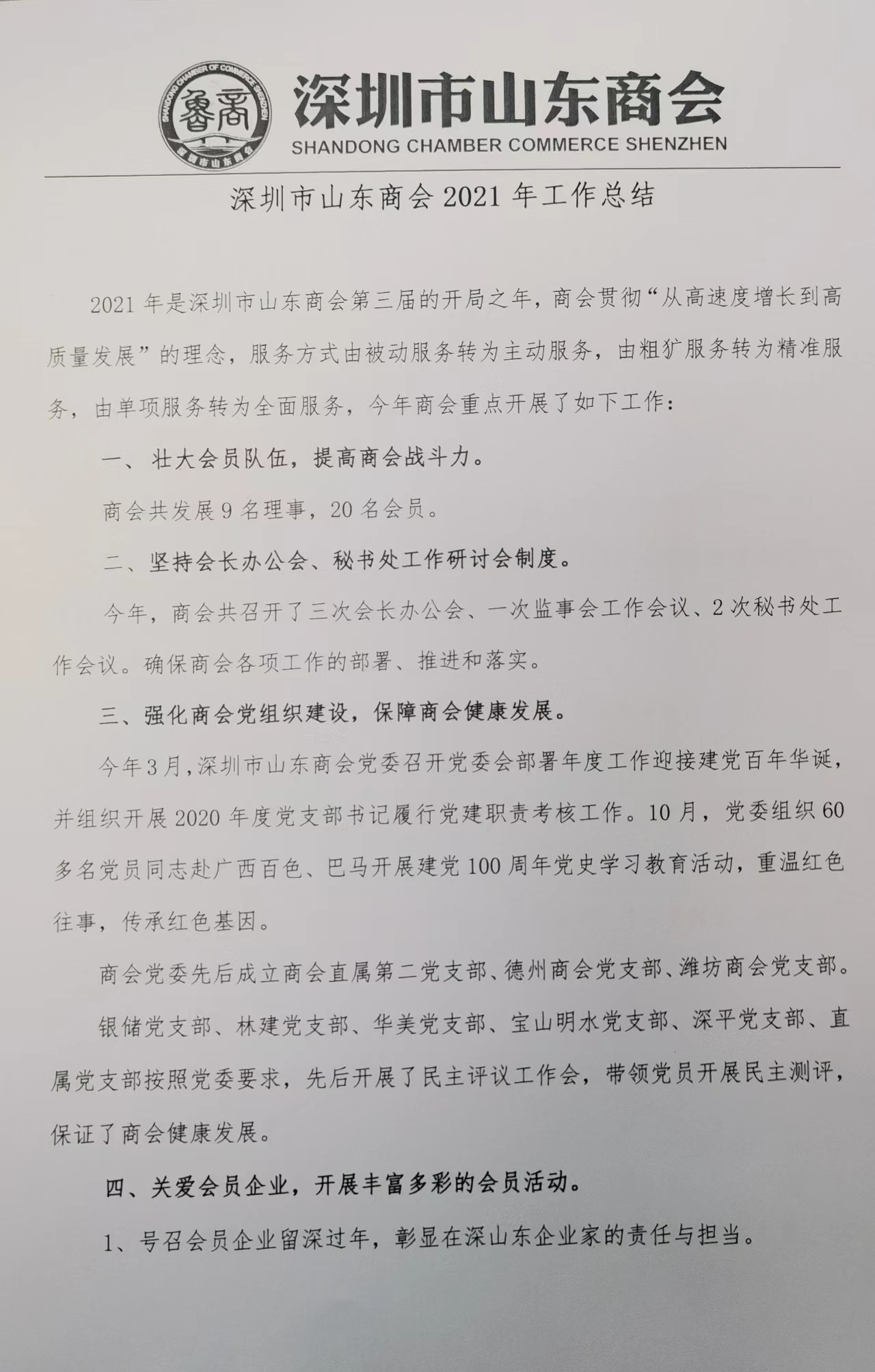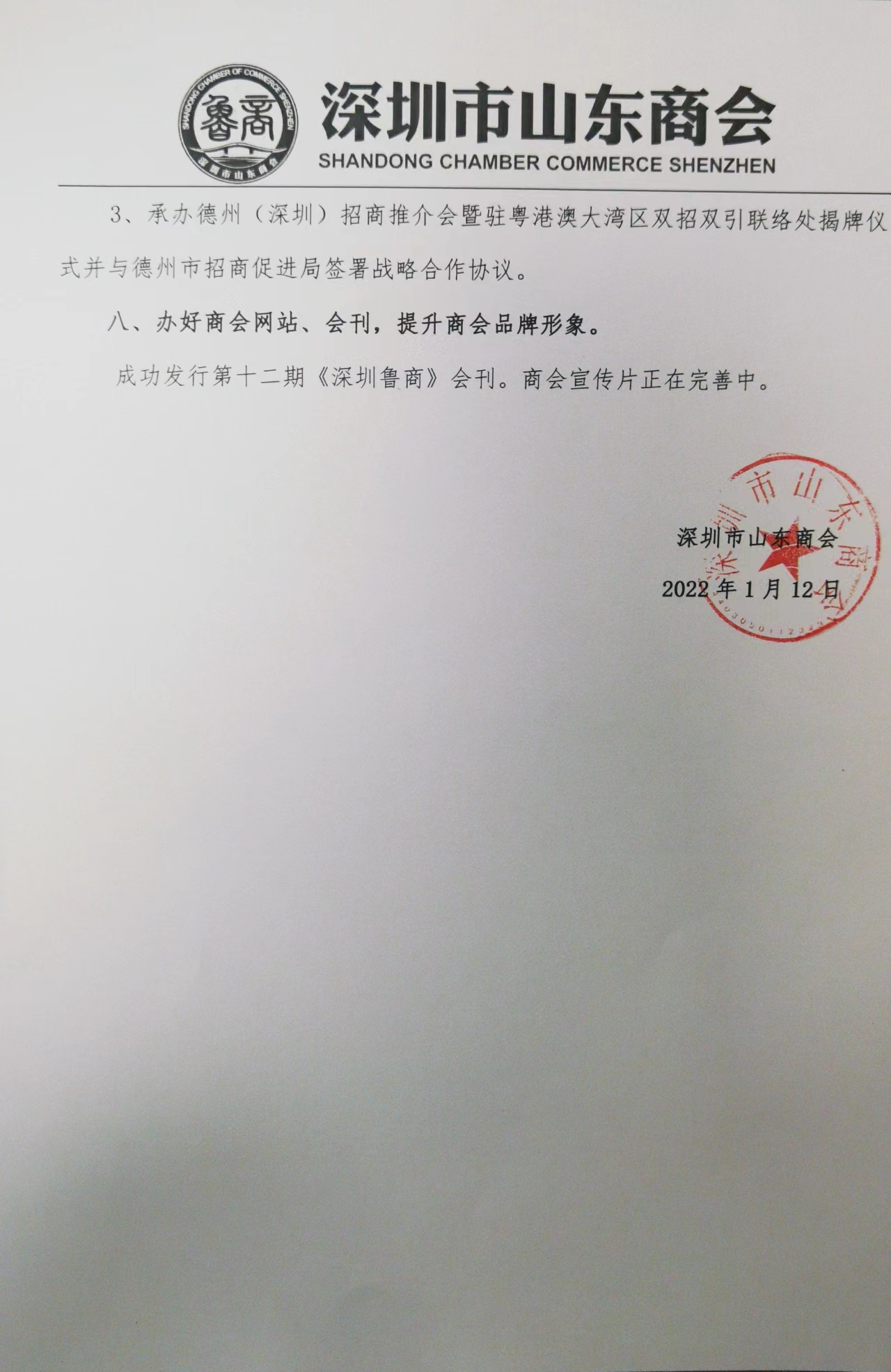 深圳市山東商會(huì)2021年度工作報(bào)告