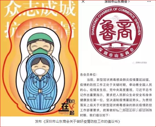 疫情當(dāng)前,深圳市山東商會和商會黨委積極響應(yīng)黨和國家號召,按照市委市政府關(guān)于疫情防控的工作指示,始終關(guān)注疫情實時動態(tài),動員、監(jiān)督會員企業(yè)做好疫情防控工作。在山東省工商聯(lián)的倡議下,1月27日起,商會相繼發(fā)布《深圳市山東商會關(guān)于做好疫情防控工作的倡議書》、《深圳市山東商會關(guān)于征集抗疫先進事跡的通知》等文件,在商會公眾號、會員交流群緊急倡議所有會員單位,提高政治站位,強化責(zé)任擔(dān)當(dāng),眾志成城,共克時艱,堅決打贏這場疫情防控戰(zhàn)。