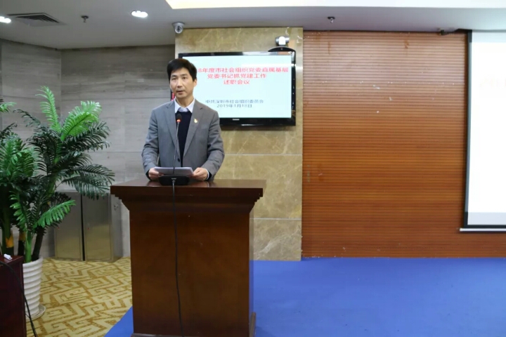 2019年1月18日下午,深圳市社會組織黨委舉行直屬黨委書記抓基層黨建工作述職會。市兩新組織黨工委副書記、市社會組織黨委書記、社會組織管理局局長凌沖同志,市社會組織黨委委員、紀委委員,市委組織部派駐十八類行業(yè)協(xié)會黨委第一書記,各直屬黨委書記及相關(guān)負責人等100多人參加會議。市社會組織黨委副書記、紀委書記肖衛(wèi)國同志主持會議。深圳市山東商會黨委作為13家現(xiàn)場發(fā)言述職單位參會。