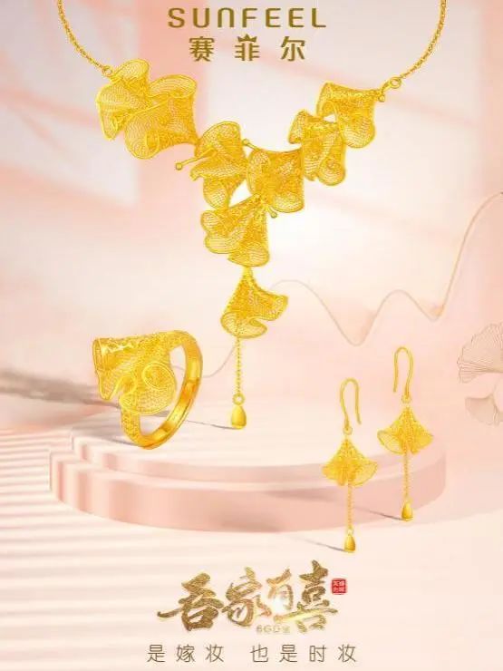 在國家倡導傳統(tǒng)文化復興,重建民族自信的路程中,賽菲爾珠寶以“文化傳承”為基石,傳承并創(chuàng)新了花絲、古法金、鏨刻等非遺手工工藝。創(chuàng)造了一系列顏值與價值并存的高品質黃金作品:“精炫金”精品萬足系列、“焦點”系列、“吾家有喜”系列等,顛覆了傳統(tǒng)設計和觀感,兼具復古感與摩登感。將日常佩戴、婚嫁禮贈、保值收藏等價值融合一身,打破了人們對于黃金飾品的刻板印象,讓黃金飾品真正的以時尚姿態(tài),融入現(xiàn)代女性的日常搭配之中。