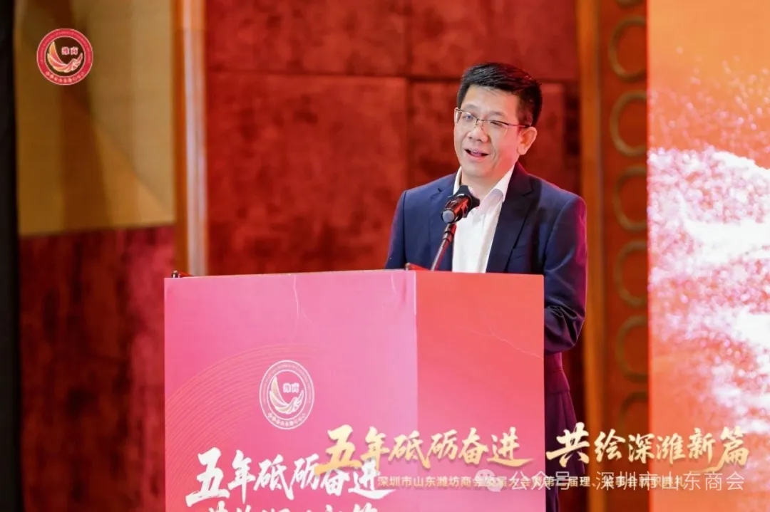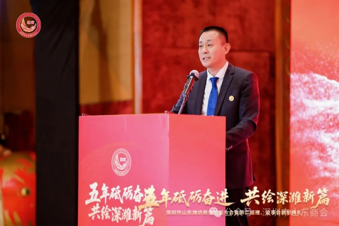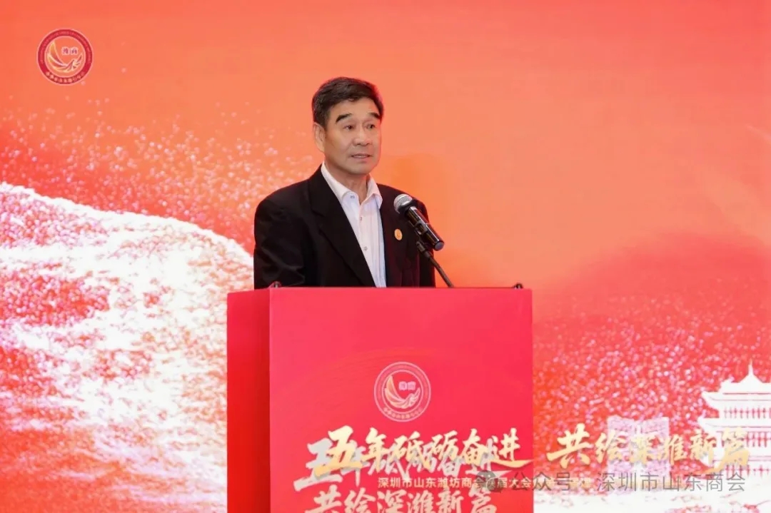 我會會長王立新在致辭中表示,濰坊是聞名世界的“風箏之都”,文化底蘊深厚,物產(chǎn)資源豐富,區(qū)位優(yōu)越,人杰地靈,是山東省的工業(yè)強市和農(nóng)業(yè)示范區(qū)。濰坊央居齊魯、通衢八方,工業(yè)門類齊全,產(chǎn)業(yè)優(yōu)勢明顯。王會長表示,多年來在全體在深濰坊人的團結(jié)努力下,取得了令人矚目的成績,展現(xiàn)了山東人的擔當與情懷,他祝福濰坊商會在新一屆領(lǐng)導班子帶領(lǐng)下,繼往開來,開拓創(chuàng)新,創(chuàng)造新業(yè)績。