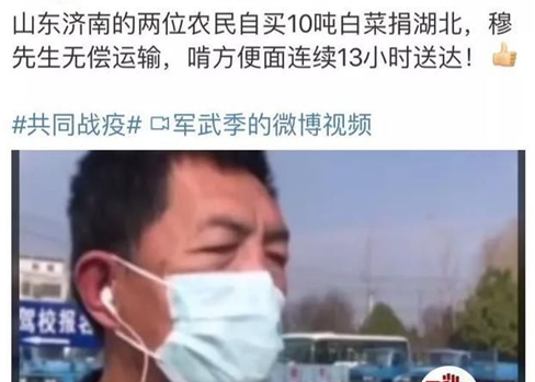 濟(jì)南兩位農(nóng)民,自己買(mǎi)了10噸菜,一路吃著方便面,13個(gè)小時(shí)送到武漢。
