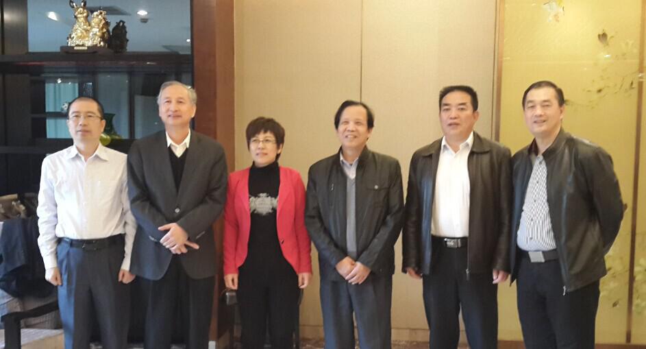 王維星會長、孔凡鵬副會長、伍柳江秘書長與團中央網(wǎng)絡(luò)影視中心副主任、團中央國學(xué)教育辦公室主任藺玉紅(左三)、深圳大學(xué)文學(xué)院首任院長郁龍余教授(中)、“文華正道國學(xué)寶典”發(fā)明人趙志銘(右二)合影留念