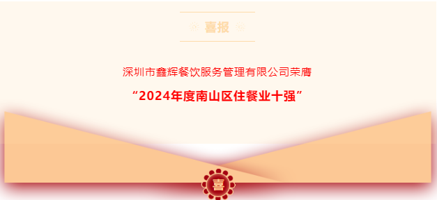 【會(huì)企動(dòng)態(tài)】熱烈祝賀我會(huì)執(zhí)行會(huì)長單位——鑫輝餐飲再獲殊榮,榮膺“2024年度南山區(qū)住餐業(yè)十強(qiáng)”!