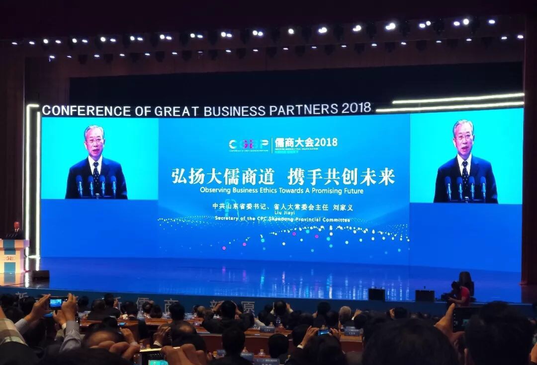 演講中,劉家義書記首先代表中共山東省委、山東省人民政府,向各位嘉賓的到來表示熱烈歡迎,向關(guān)心支持山東發(fā)展的海內(nèi)外朋友表示衷心感謝。他表示,以孔子為代表創(chuàng)立的儒家思想,深刻影響了世界文明進程、中國社會發(fā)展及山東人的心性品格。山東是儒家思想的重要發(fā)源地,是天下儒商的精神家園。他指出,習近平總書記對山東發(fā)展寄予厚望,多次作出重要指示,要求在高質(zhì)量發(fā)展上奮力趟出一條路子。為牢記與實施總書記的囑托,如今山東已在歷史新起點上,搭建發(fā)展新平臺、激發(fā)改革新活力和打造對外開放新高地。因此,山東需要弘揚大儒商道,秉持敬儒重商、親商富商理念,需要營造一流發(fā)展環(huán)境,讓“近者悅”,讓“遠者來”,匯聚起山東高質(zhì)量發(fā)展的磅礴力量。