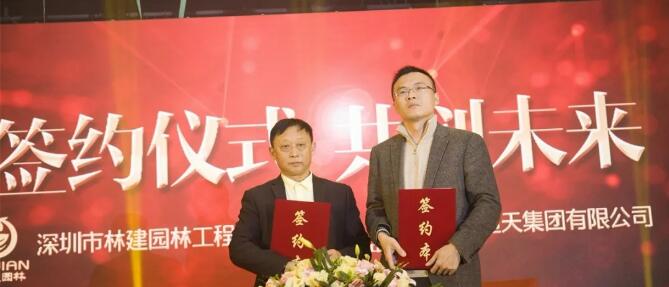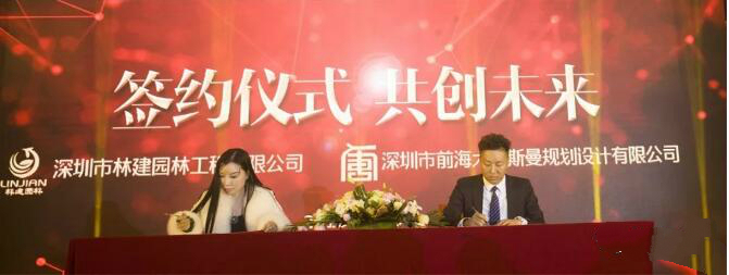 晚會(huì)上,在領(lǐng)導(dǎo)的見證和關(guān)注下,林建園林與中國(guó)恒天集團(tuán),深港環(huán)保,大唐斯曼設(shè)計(jì)規(guī)劃等簽訂了戰(zhàn)略合作協(xié)議。深圳市領(lǐng)導(dǎo)送林建園林書法作品一幅表示祝賀。