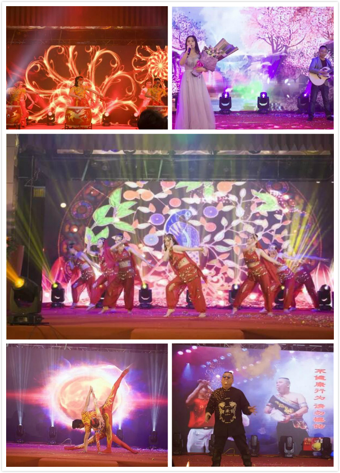 同時(shí)現(xiàn)場(chǎng)還設(shè)置了豐富的物品及現(xiàn)金獎(jiǎng)項(xiàng),連同精彩的節(jié)目表演(美麗姑娘的《快樂的跳吧》,雜技達(dá)人 表演噴火,雜技《力量》,林建好聲音《再見只是陌生人》,《甄嬛歪傳》,獨(dú)唱《藍(lán)蓮花》,能歌善舞的豬八戒,財(cái)神爺《發(fā)紅包》)一起將晚會(huì)推向了一場(chǎng)場(chǎng)高潮。