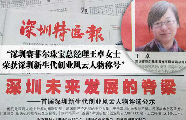 深圳賽菲爾珠寶總經理王卓女士能評選上這次深圳新生代創(chuàng)業(yè)風云人物和深圳青年商會副會長,這不僅是她個人實力的展現(xiàn),也是她對珠寶行業(yè)的熱愛、努力拼搏和揮灑的汗水鑄就了她今天的成就,同時這更是深圳賽菲爾珠寶公司內在雄厚實力的體現(xiàn)。