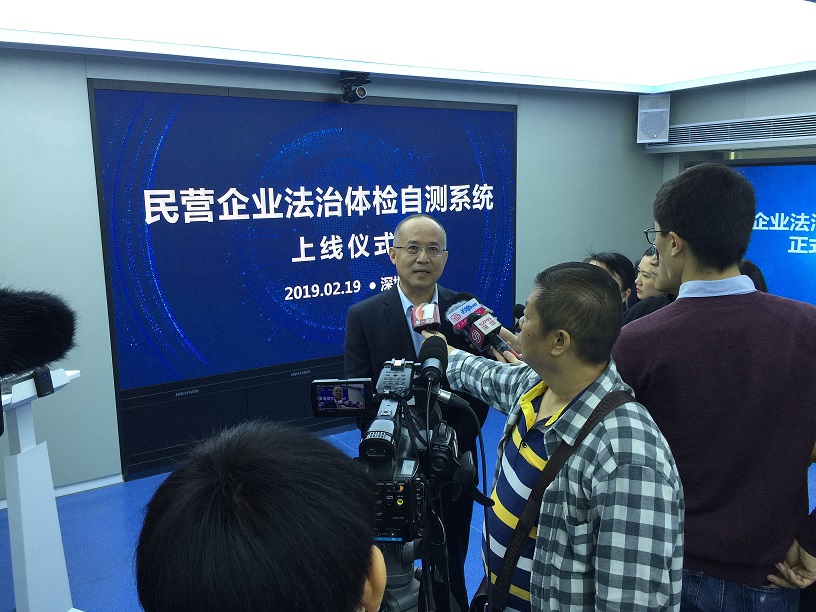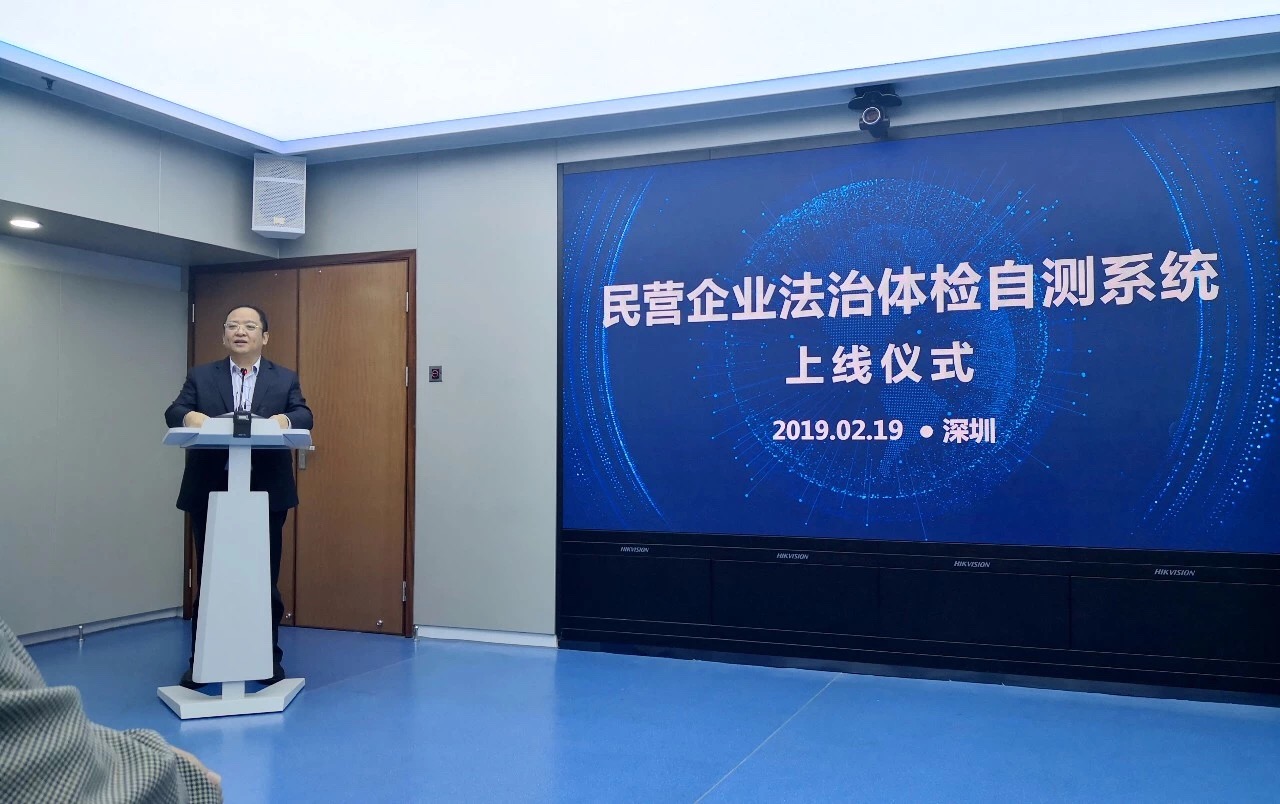2月19日上午,全國首家“民營企業(yè)法治體檢自測系統(tǒng)”上線儀式在深圳市司法局舉行。儀式由深圳市司法局副局長蔣小文主持,深圳市政協(xié)副主席王璞、深圳市委政法委常務(wù)副書記梁增昌出席并啟動“民營企業(yè)法治體檢自測系統(tǒng)”上線。深圳市司法局局長蔣溪林、深圳市司法局巡視員陳鄭興、深圳市前海管理局、深圳市工商業(yè)聯(lián)合會相關(guān)領(lǐng)導(dǎo)及部分民營企業(yè)、商協(xié)會代表出席上線儀式。我會會長王立新、執(zhí)行秘書長兼辦公室主任陳振永應(yīng)邀出席。