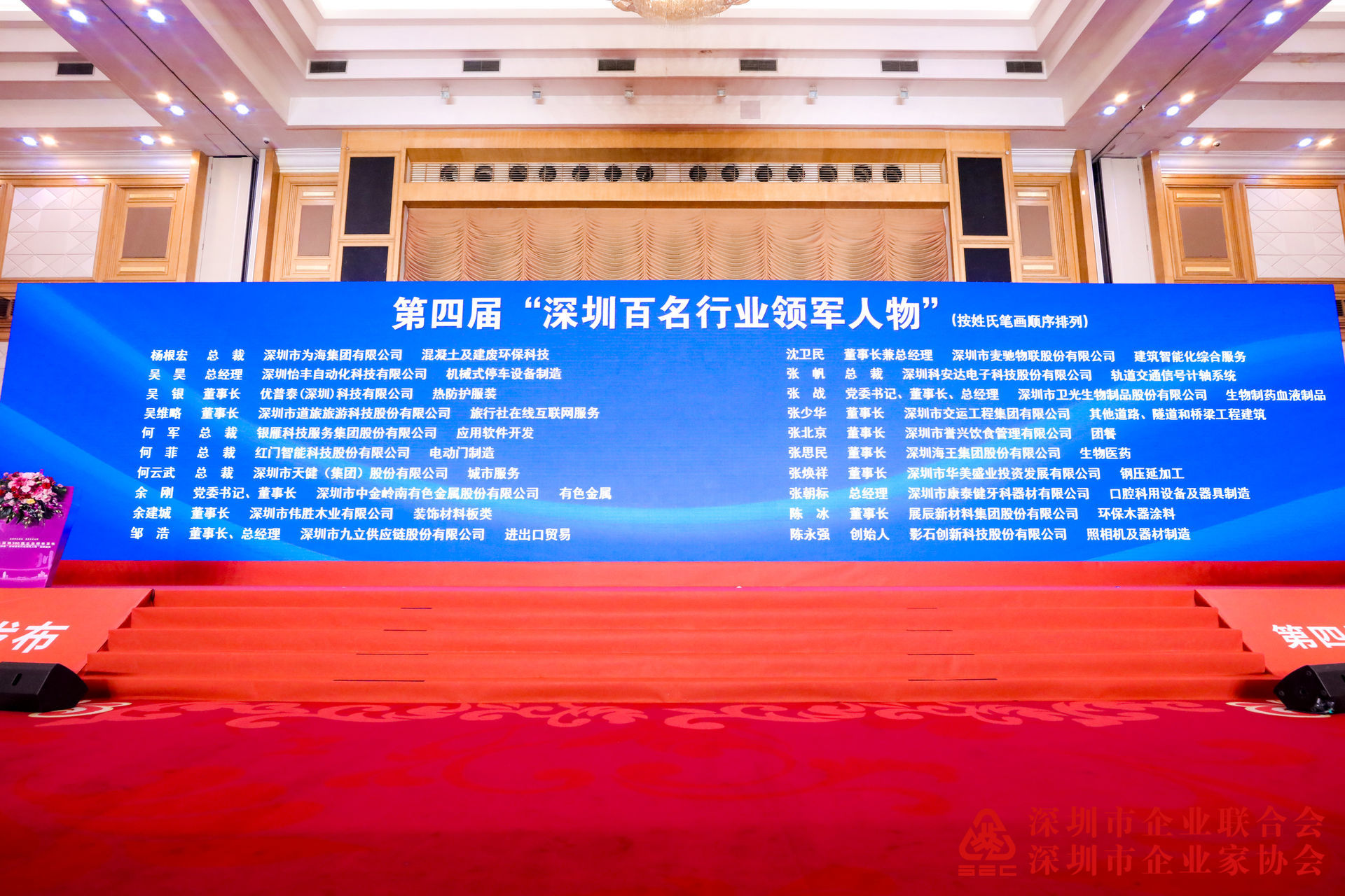 2021年10月29日下午,由深圳市企業(yè)聯(lián)合會和深圳市企業(yè)家協(xié)會聯(lián)合主辦的“奮進雙區(qū)建設(shè) 勇當質(zhì)量先鋒”——2021深圳500強企業(yè)發(fā)布暨第四屆“深圳百名行業(yè)領(lǐng)軍人物”頒獎盛典在深圳五洲賓館(五洲廳)隆重舉辦。