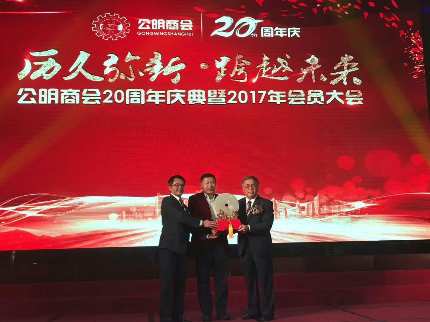 2017年11月22日下午,深圳市光明新區(qū)公明商會(huì)以“歷久彌新,跨越未來”為主題在光明新區(qū)寶明城大酒店隆重舉行成立二十周年慶典暨2017年會(huì)員大會(huì)。我會(huì)副會(huì)長張捷,常務(wù)理事張延偉,執(zhí)行秘書長陳振永受王立新會(huì)長委托與近千名嘉賓及社會(huì)各界代表出席了活動(dòng),共同見證和分享了公明商會(huì)成立二十周年的喜悅。深圳市光明新區(qū)管委會(huì)副主任胡育青同志代表光明新區(qū)上臺(tái)致辭。