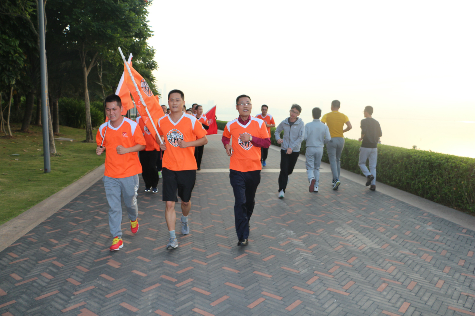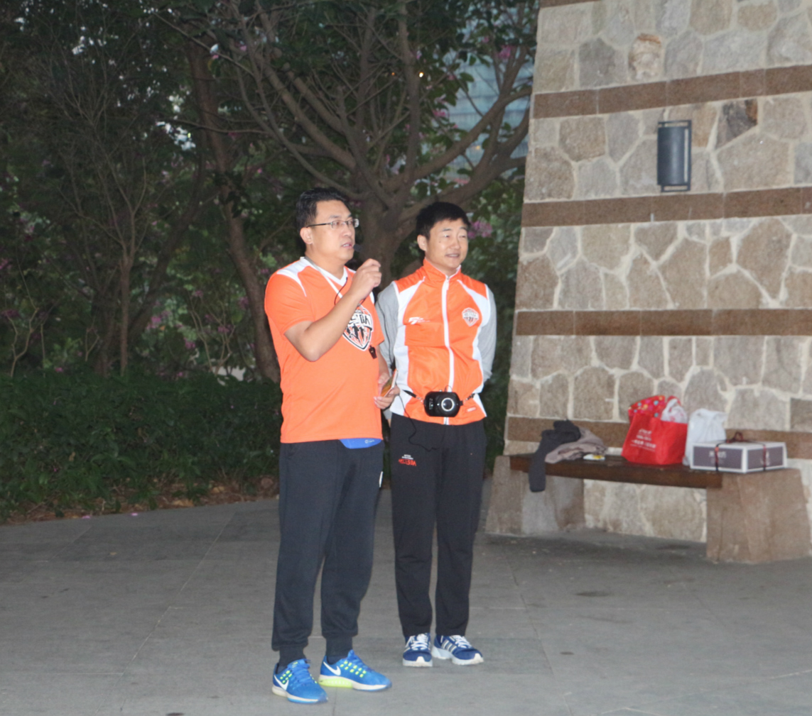 6:45首跑儀式正式開始,儀式由微馬協(xié)會文峰總隊長主持。王立新會長在致辭中表示,微馬是即能豐富會員業(yè)余生活,又能增強(qiáng)體質(zhì),樹立魯商形象的優(yōu)質(zhì)活動,商會將給予大力支持,為每位堅持連續(xù)跑3次的隊員贈送一件微馬服。希望大家跑出健康,跑出快樂,跑出事業(yè)。商會微馬隊長李井輝介紹了微馬隊的籌備情況及成立后的相關(guān)計劃。之后,微馬發(fā)起人顧永德先生給商會微馬隊授旗,標(biāo)志著 “深圳市山東商會微馬隊”正式成立了。