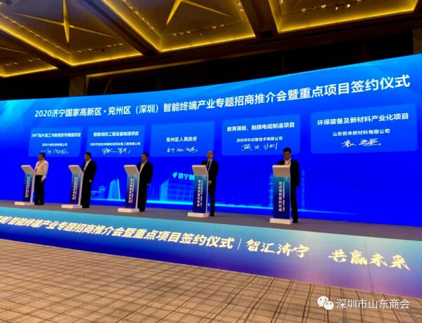 11月8日,2020濟(jì)寧國(guó)家高新區(qū)、兗州區(qū)(深圳)智能終端產(chǎn)業(yè)專題招商推介會(huì)暨重點(diǎn)項(xiàng)目簽約儀式在深圳舉行。市委書記、市人大常委會(huì)主任傅明先,深圳市社會(huì)組織總會(huì)執(zhí)行會(huì)長(zhǎng)孫文平,廣東高科技產(chǎn)業(yè)商會(huì)會(huì)長(zhǎng)王理宗出席并致辭,我會(huì)執(zhí)行秘書長(zhǎng)陳振永受王立新會(huì)長(zhǎng)委托代表深圳市山東商會(huì)應(yīng)邀出席會(huì)議。